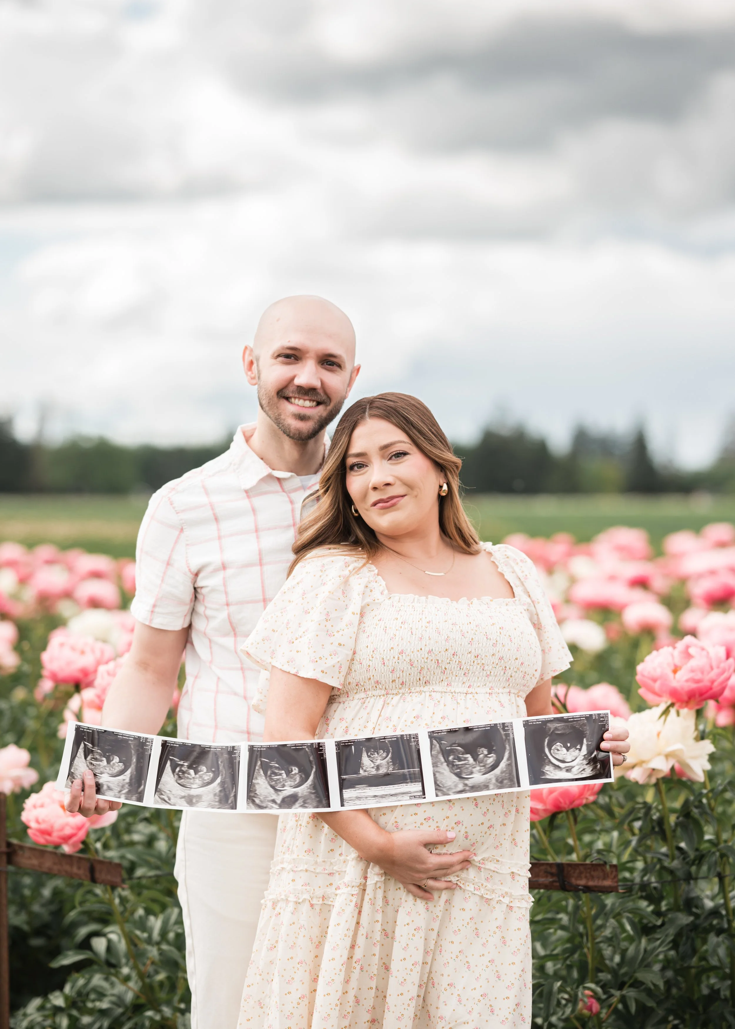 Christine picked the amazing Adelman Peony Garden in Salem, Oregon for the maternity shoot & I have to say, it was the perfect choice. The right color of peonies were in bloom, it wasn’t super busy, the lighting was just right & the clouds wanted to join us lol.