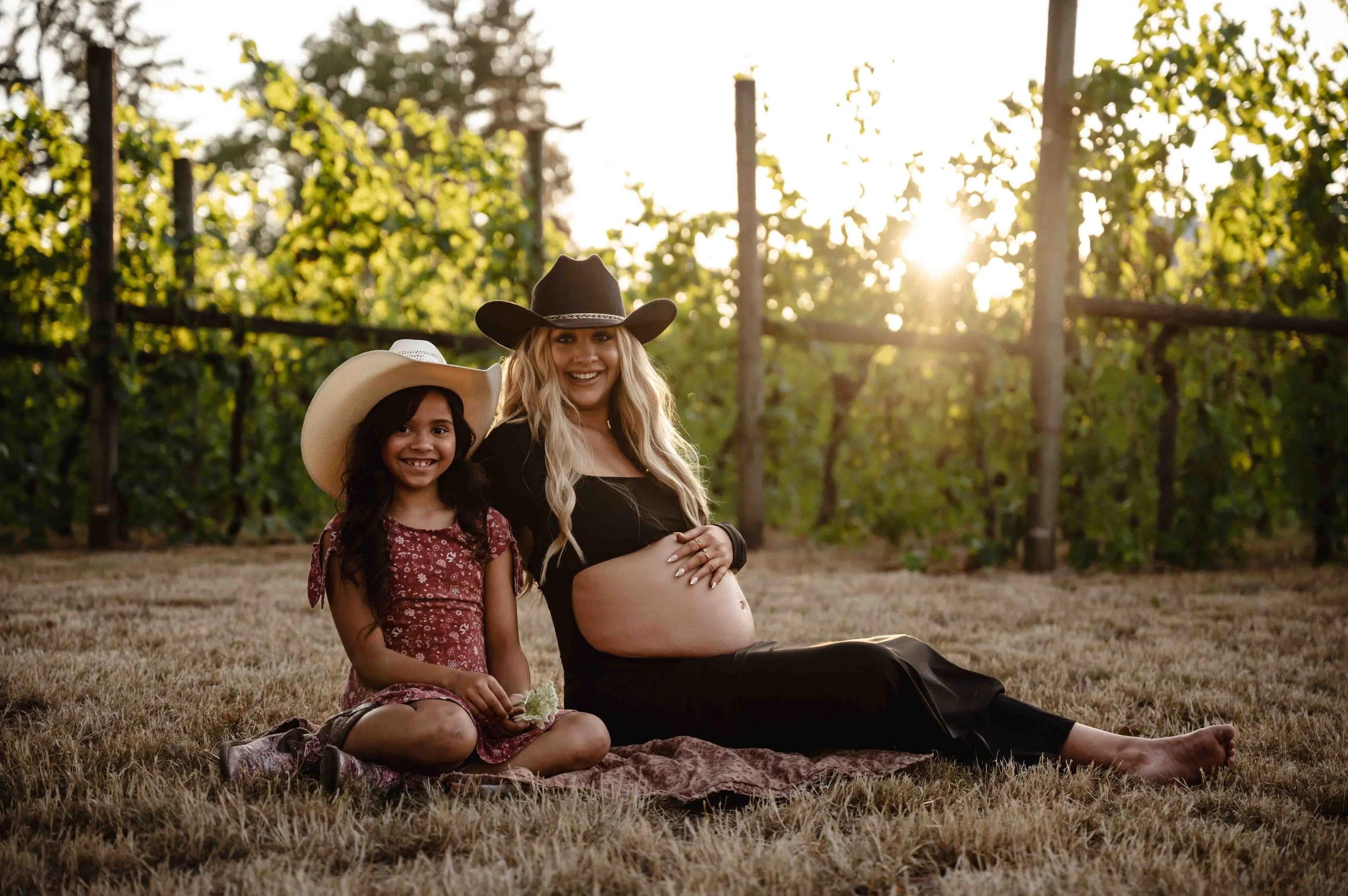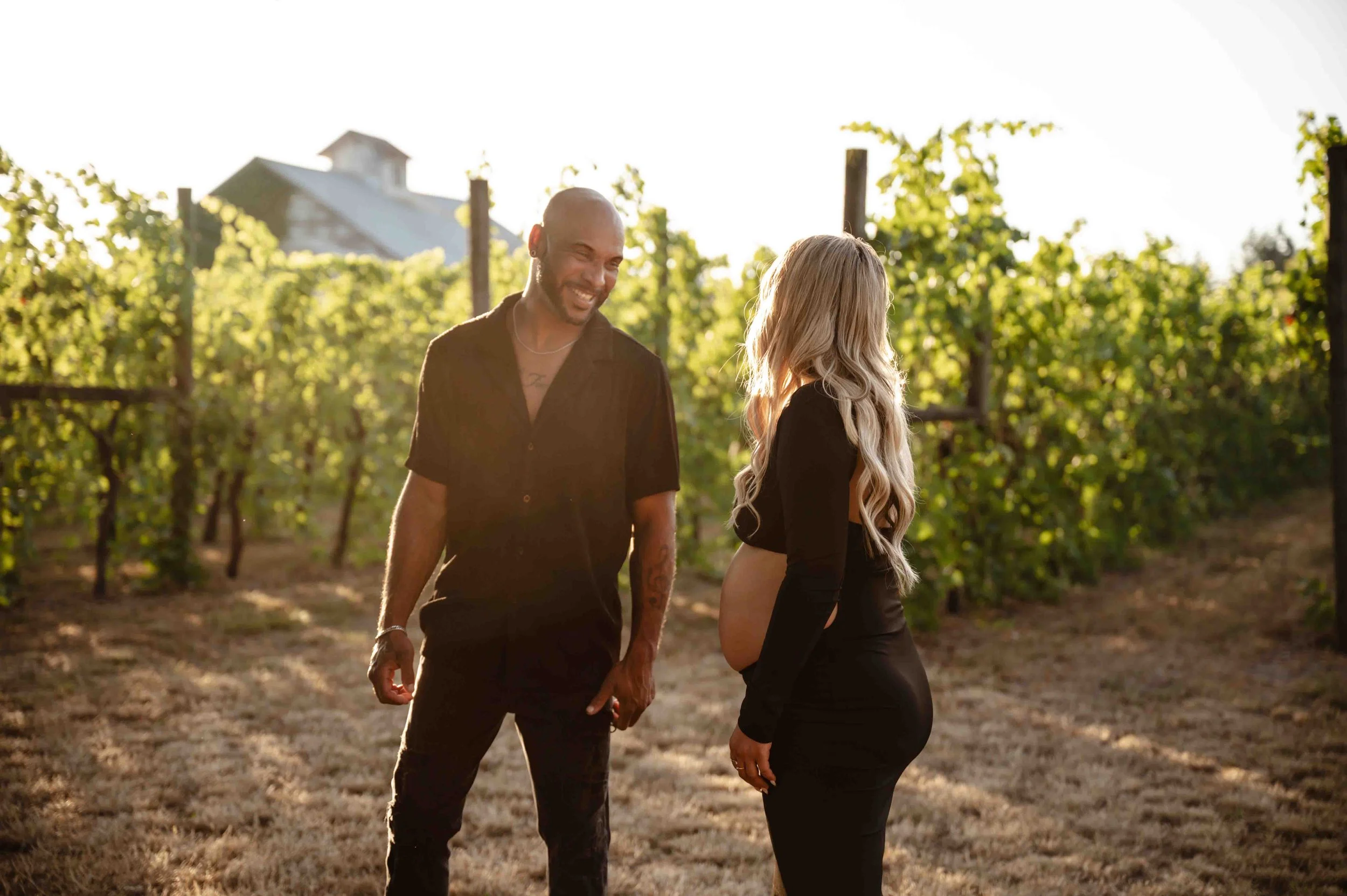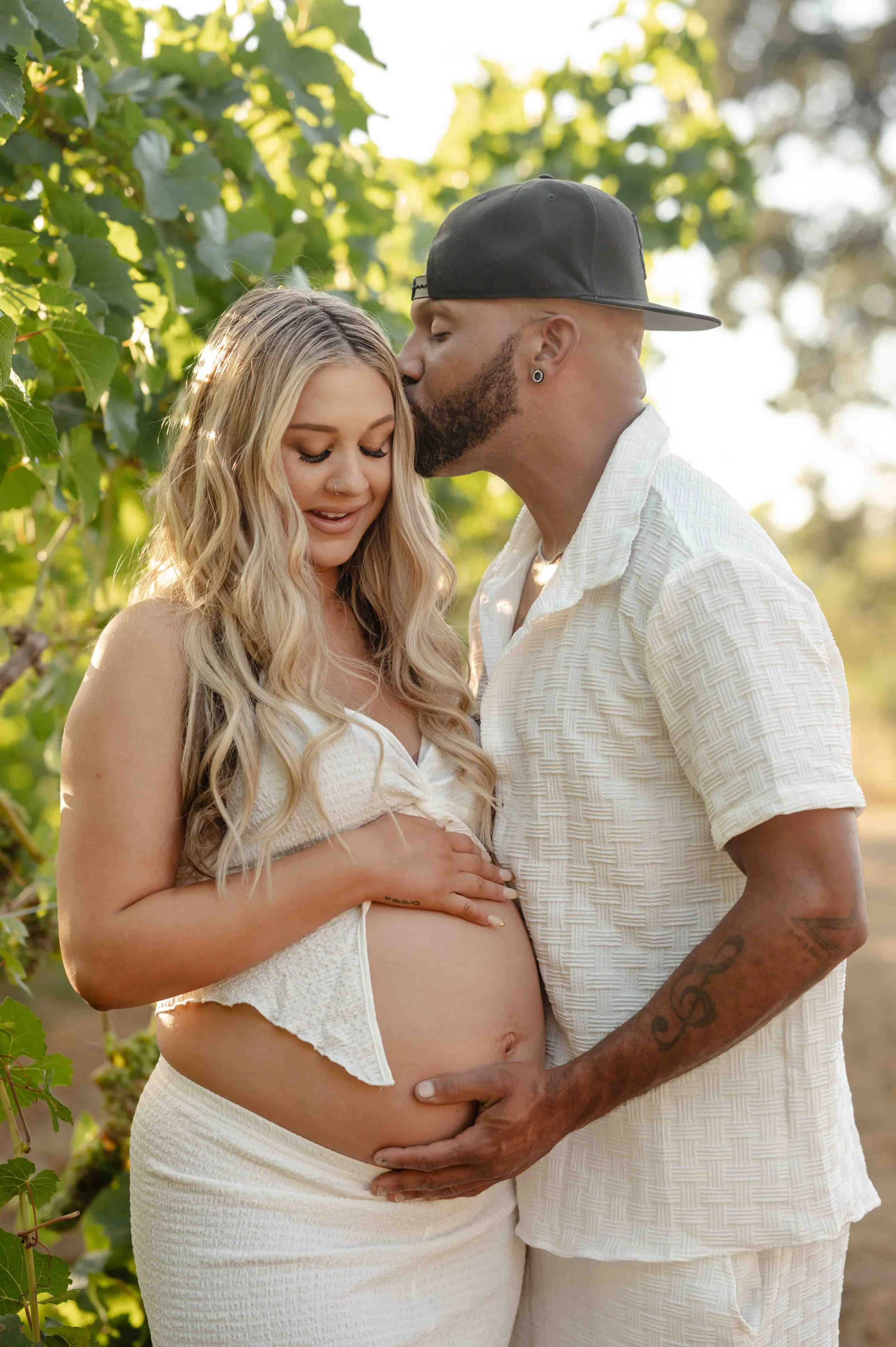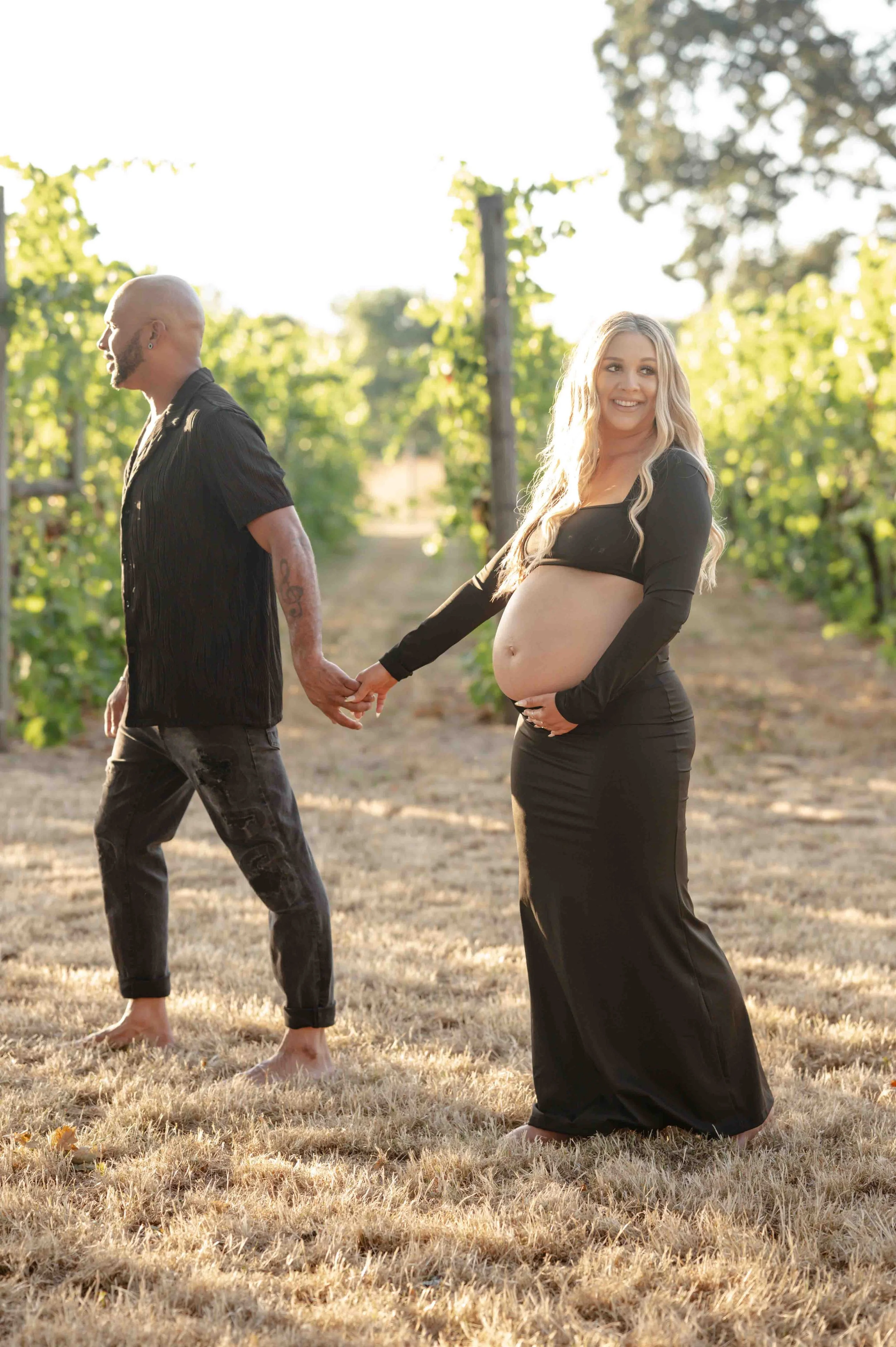 When your backyard is a literal vineyard, there’s really only one thing to do—plan a photo session, of course! Rows of lush green vines with golden sunlight streaming through the leaves, tall, dry grass and flowers, and the big oak trees made the perfect backdrop. With their sweet little one arriving next month, Whitney knew she wanted to capture this chapter in the dreamy glow of golden hour. Capturing some of the grapes on the vines, soaking in the magic of the evening, and every frame was filled with closeness, anticipation, and just a hint of that “can’t wait to meet you” feeling.