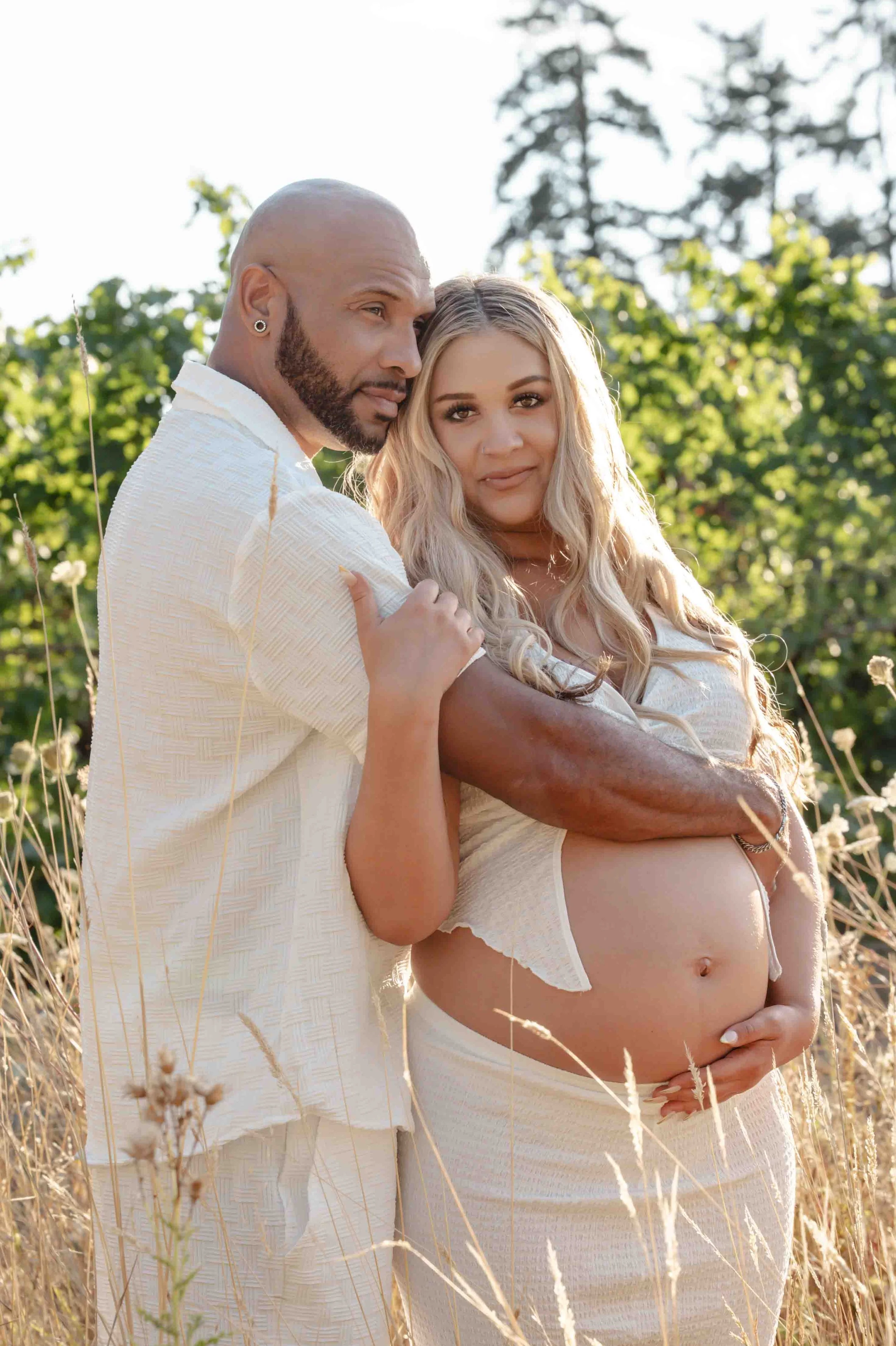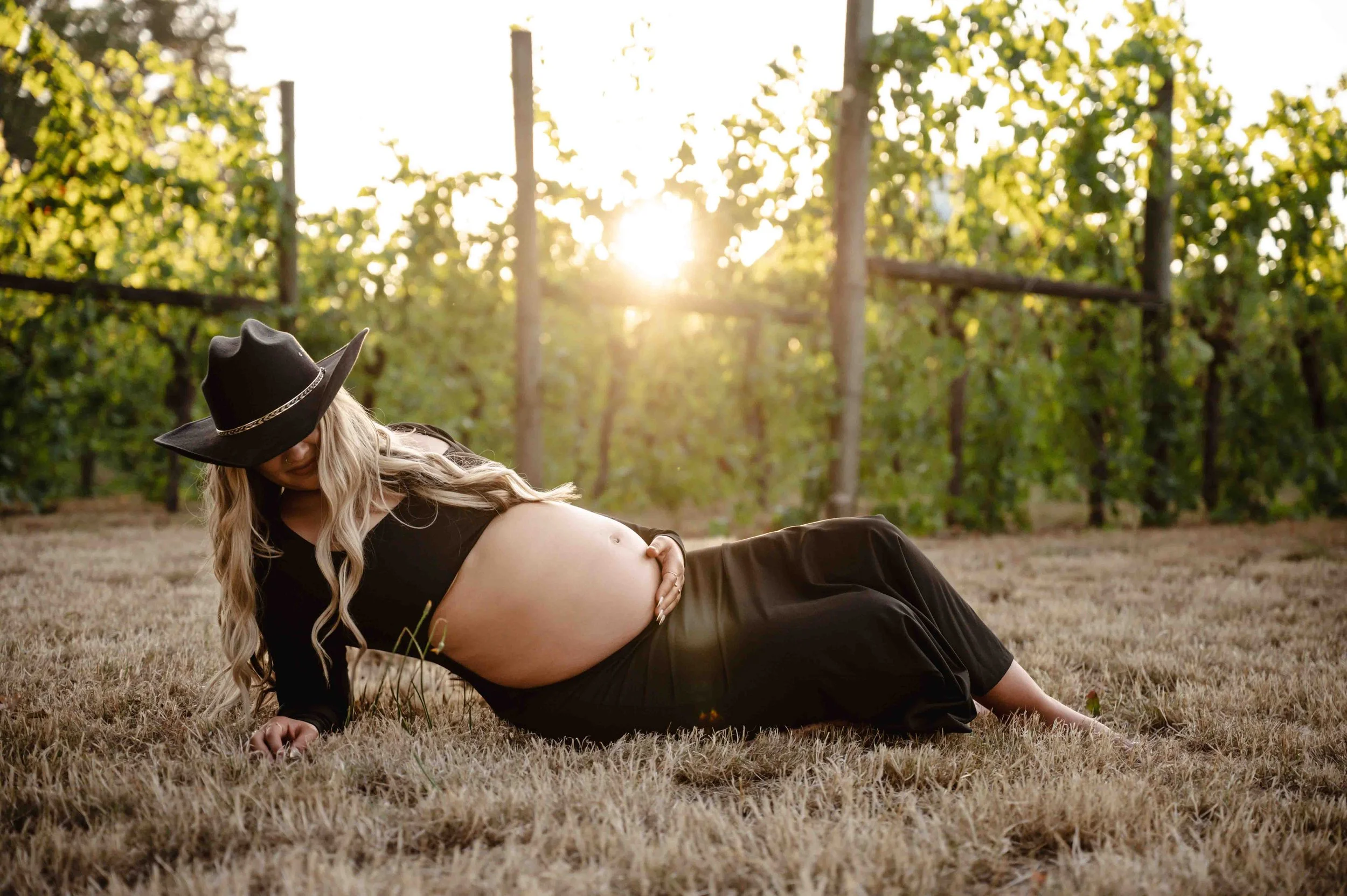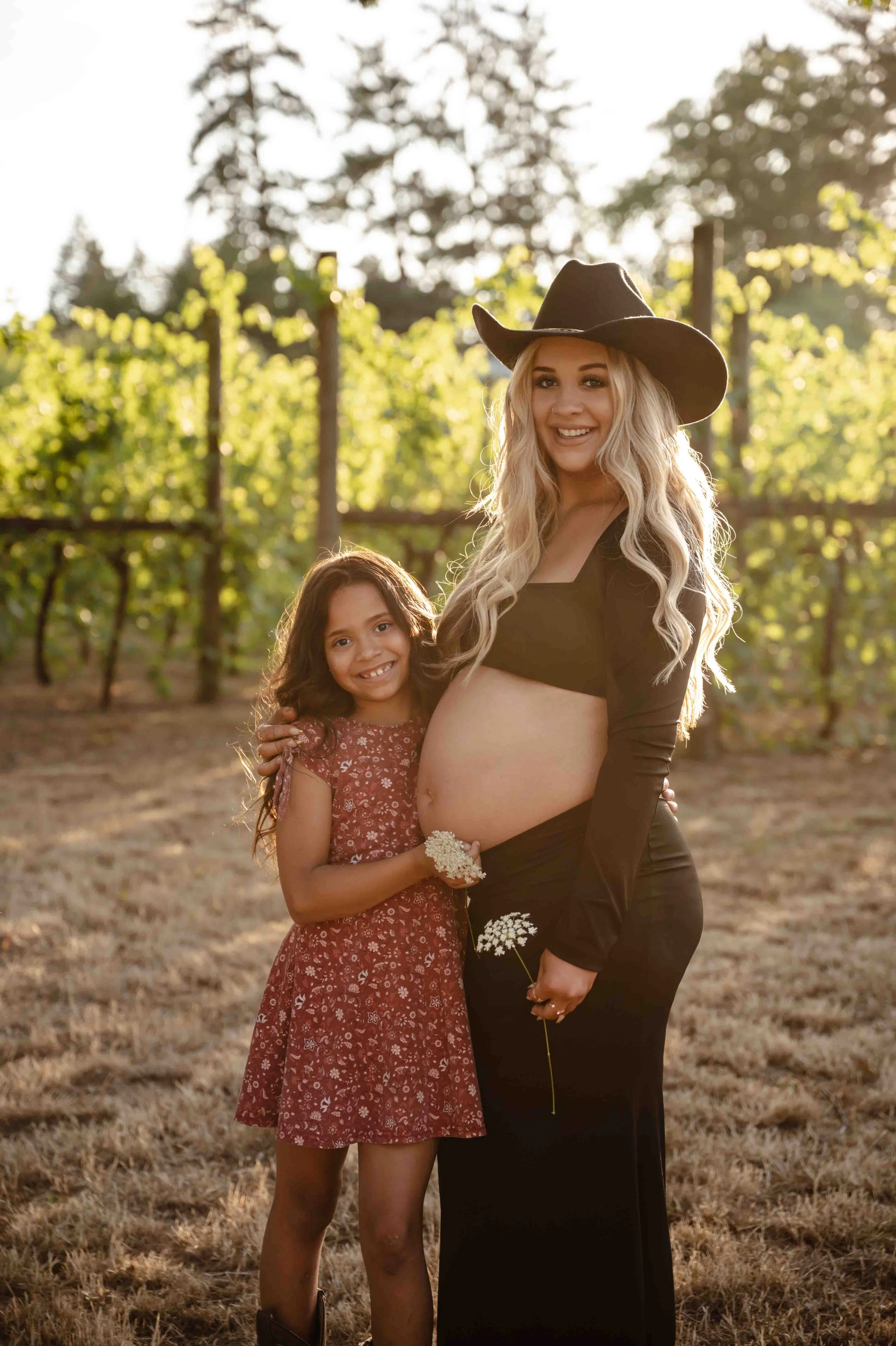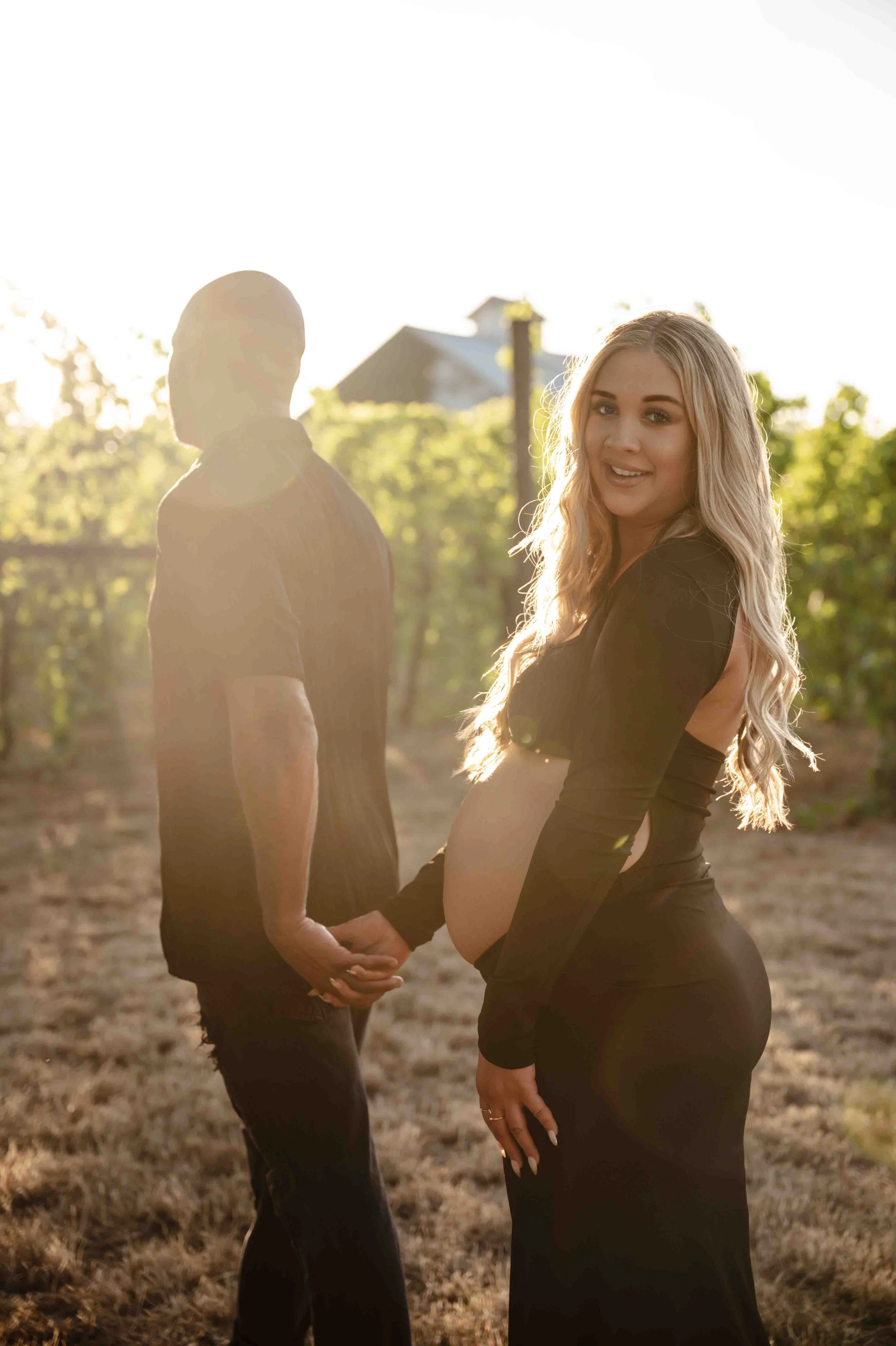 When your backyard is a literal vineyard, there’s really only one thing to do—plan a photo session, of course! Rows of lush green vines with golden sunlight streaming through the leaves, tall, dry grass and flowers, and the big oak trees made the perfect backdrop. With their sweet little one arriving next month, Whitney knew she wanted to capture this chapter in the dreamy glow of golden hour. Capturing some of the grapes on the vines, soaking in the magic of the evening, and every frame was filled with closeness, anticipation, and just a hint of that “can’t wait to meet you” feeling.